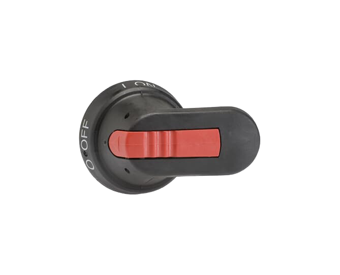 - OHB65J6, pistol handle for base and DIN-rail mounted switches. Suitable for shaft diameter 6 mm. Color black, handle length 65 mm. IP65, NEMA 1, 3R, 12, padlockable with three padlocks in OFF-position, door interlock in ON-position. Screw fixing from the back side of the handle. No screws on the front ensures double insulation.