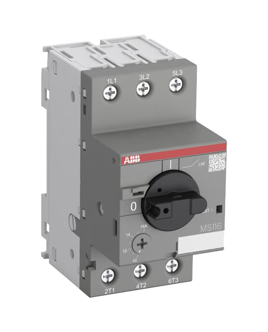 - The MS116-2.5 manual motor starter (also known as motor protection circuit breaker or manual motor protector) is a compact 45 mm width device with a rated operational current of Ie = 2.5 A. This device is used to manually switch on and off motors and to protect them reliably and without the need for a fuse from short-circuits, overload and phase failures. The manual motor starter offers a rated service short-circuit breaking capacity Ics = 50 kA at 400 VAC and trip class 10A. Further features are the build-in disconnect function, temperature compensation, trip-free mechanism and a rotary handle with a clear switch position indication. The manual motor starter is suitable for three- and single-phase applications. Auxiliary contacts, signaling contacts, undervoltage releases, shunt trips, 3-phase bus bars, power in-feed blocks and locking devices for protection against unauthorized changes are available as accessory.