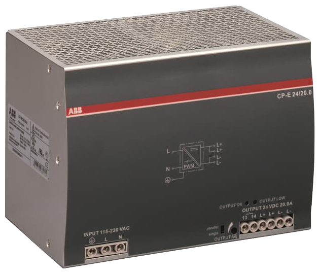 - The CP-E 24/20.0 is a power supply from the CP-E range. The primary switch mode power supply offers a wide range input of 90-264 V AC and 120-375 V DC, rated input voltage is 115-230 V AC. The rated output power is 480 W, rated output current is 20 A at an output voltage of 24 V DC. The output voltage is adjustable within a range of 22.5 to 28.5 V DC. The power supply provides an U/I output characteristic. In order to increase capacity, up to 3 units can be connected in parallel. A redundancy unit is available as accessory.