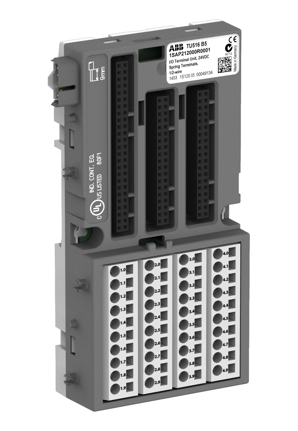 ABB TU516-H : S500 I/O terminal unit. For analog and 24 VDC digital modules. Spring terminals. Hot Swap.